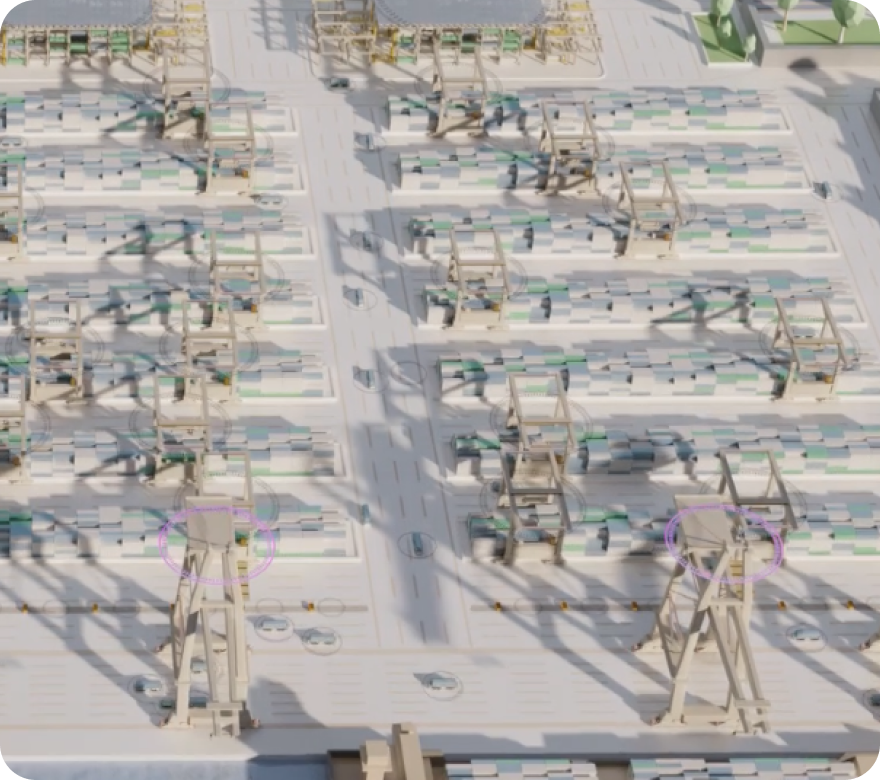Real-time routing algorithms assign optimal paths for every asset — IGVs, trucks, forklifts, equipment. Disruptions are handled instantly. Empty runs and energy consumption drop together, as part of one integrated decision.